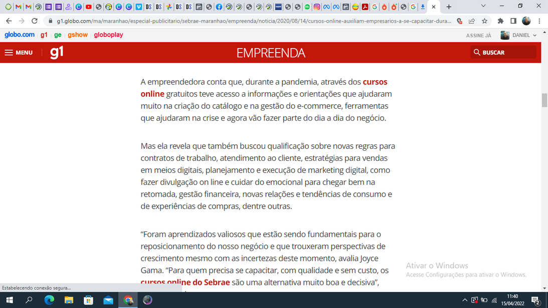 Além das atividades acima, nestes 12 anos de formação em Administração, o professor Daniel Santana, trabalhou muito tempo como professor universitário, analista de vendas, coordenador de cursos e agente de inovação .